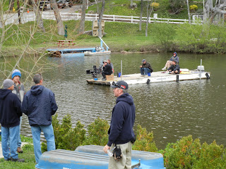 Every day we have ridden past organized Chaos on the main road- This chaos stemmed from RVs, People, Vans, Police Officers (real and fake), and other madness. The reason for this? There is a TV show filming an episode (that is the future part) and every time we rode past we'd witness television future in the making. The show: Criminal Minds on CBS. One day Cody and I noticed a ramp leading into the lake, and a jeep looking like it was being prepared for launch. The next day, Joe got held up waiting for a scene to be shot, and somehow ended up giving his business card to the guy. 1 hour later, Joe got a text from an unknown number saying "Stunt happens now. Come down".